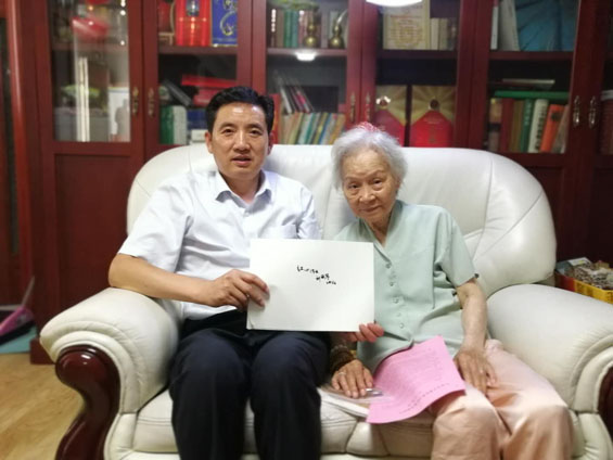 94歲的新四軍老戰(zhàn)士焦?jié)櫪榧t心偉業(yè)題字