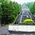 整個陵園分陵園門庭、紀念堂、碑林、紀念碑、雕塑園五部分。首先我們看到的是陵園主大門,園標“井岡山革命烈士陵園”是參加過井岡山斗爭的老紅軍戰士宋任窮題寫的。順山而上,有兩組臺階,第一組有49級,象征1949年新中國成立,井岡山人民得解放;第二級有60級,寓意北山烈士陵園是在井岡山革命根據地創建六十周年的1987年建成,對外開放。